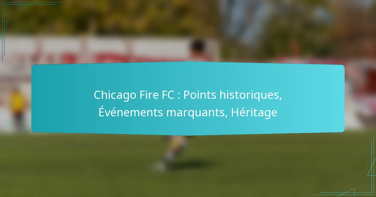 Chicago Fire FC, fondé en 1997, a une histoire riche au sein de la Major League Soccer, marquée par des réalisations notables et un engagement envers la croissance du football aux États-Unis. L’héritage du club comprend plusieurs championnats et un effectif dynamique de joueurs influents, reflétant son statut de joueur clé dans le football américain. Des événements significatifs, tels que des changements de propriété et des initiatives communautaires, ont encore façonné son identité et l’engagement des fans au fil des ans.
