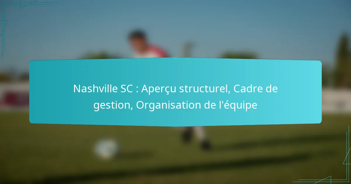 Nashville SC est un club de football professionnel situé à Nashville, Tennessee, qui évolue en Major League Soccer (MLS). Le club dispose d’un cadre de gestion structuré comprenant la propriété, la direction exécutive et un personnel d’entraîneurs dédié, tous travaillant ensemble pour assurer le succès de l’équipe. Avec un accent sur la collaboration entre les départements, Nashville SC vise à optimiser la performance et à renforcer l’engagement communautaire.